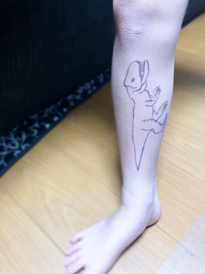 自分で足にタトゥー入れてるんですけど・・・
