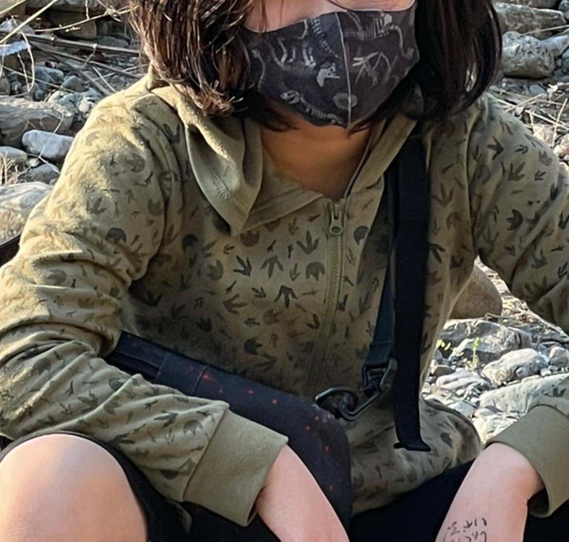 (マスクも化石柄)