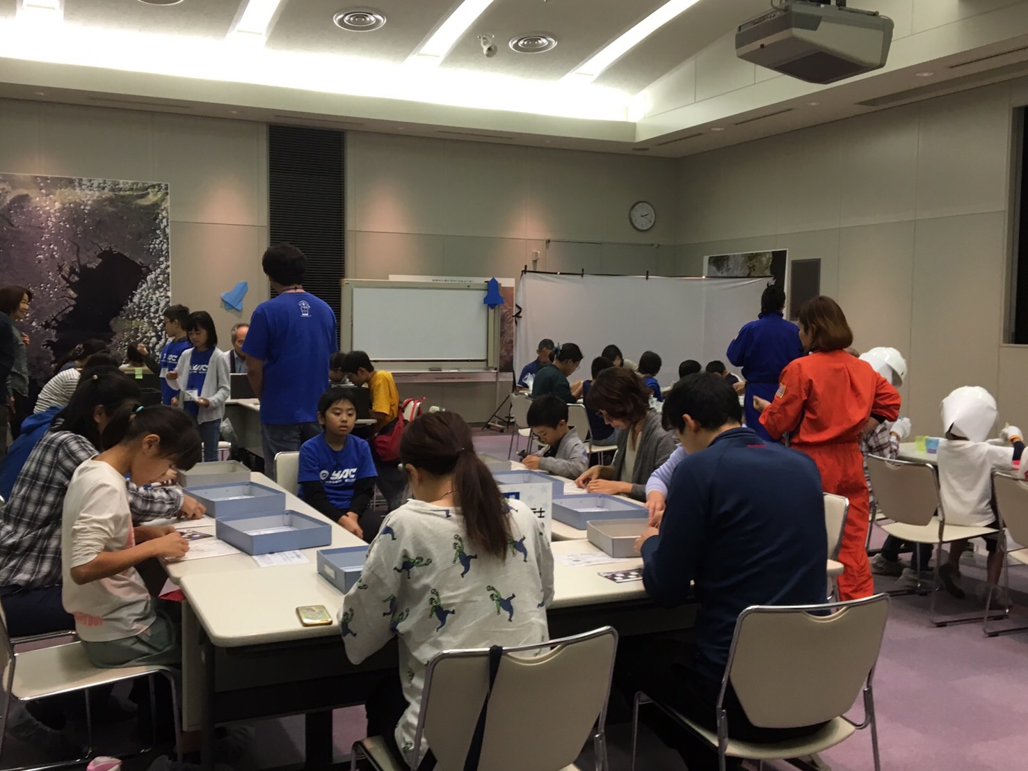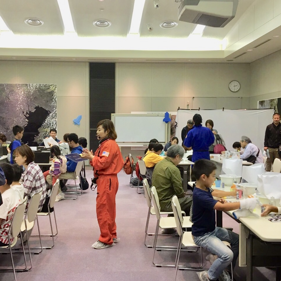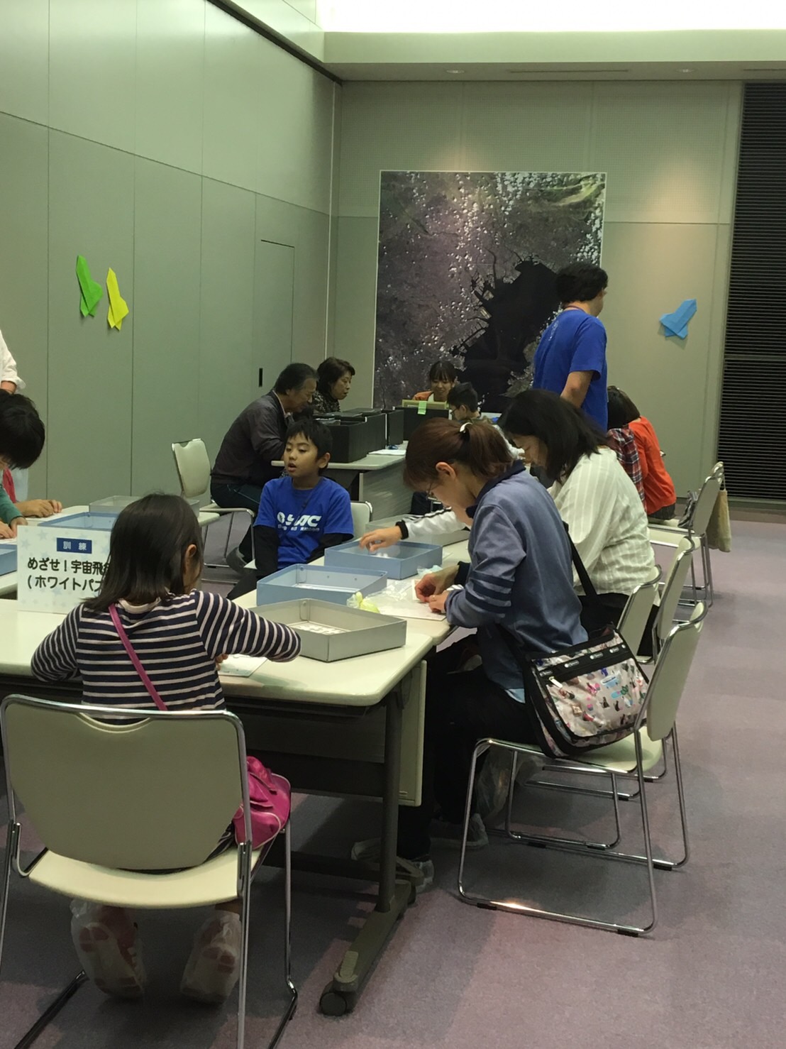 JAXA地球観測センター秋の一般公開2018 宇宙教育の活動・イベント・講座・準備 X Facebook はてブ Pocket LINE コピー 2018.10.15 10/13 JAXA地球観測センター秋の一般公開に出展♪ 春に続き、秋も宇宙飛行士疑似体験で出展させていただきました! 定員30名様×10回のワークショップ! 全回満席でした! ありがとうございました♪