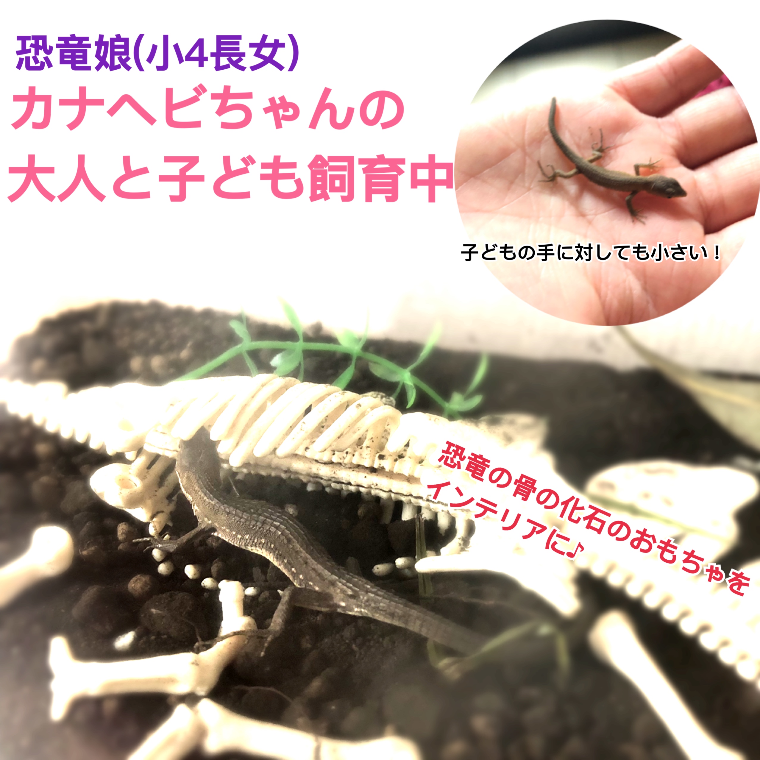 自宅近くでこれまた自力で捕獲した赤ちゃんカナヘビを
